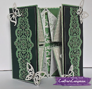 6. Die cut 4 of the largest butterfly from the Butterfly Dance die and layer 2 on top of each other to give a 3d look. Plus 4 sets of the smaller butterfly's using the Flit and Flutter decorative die.